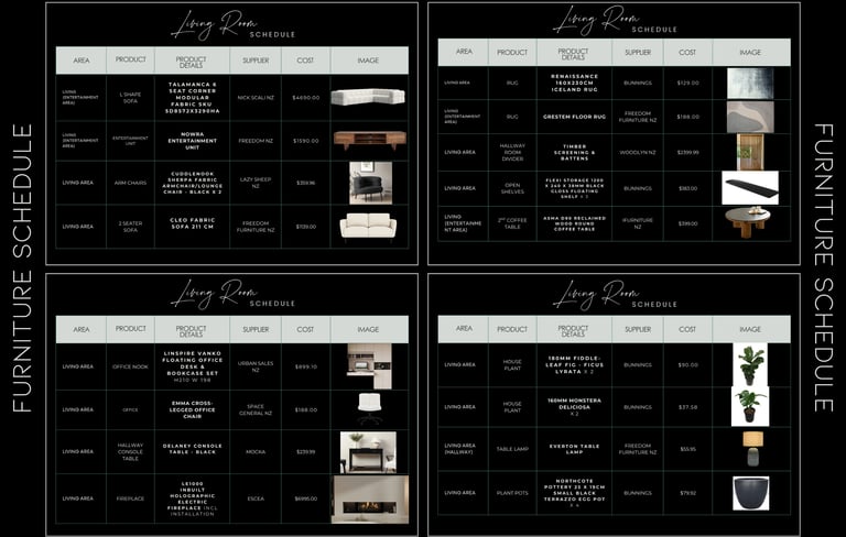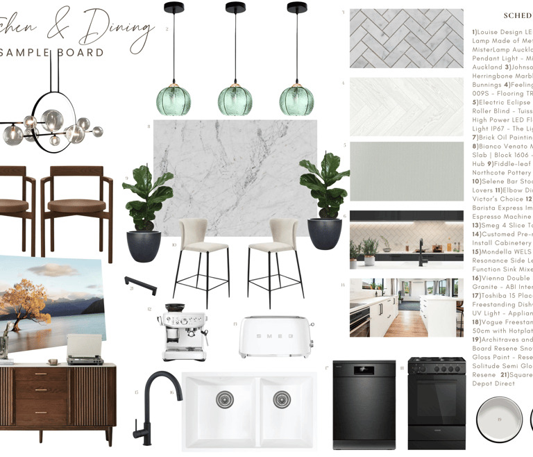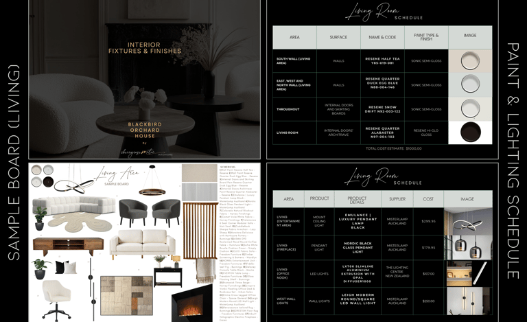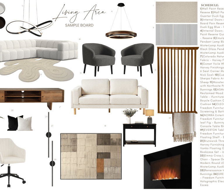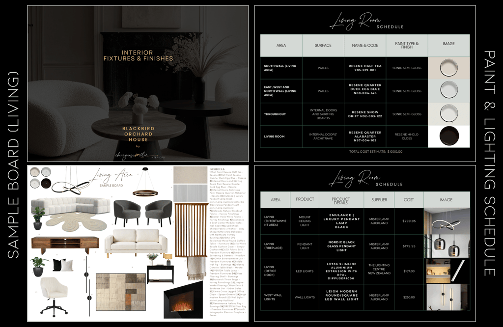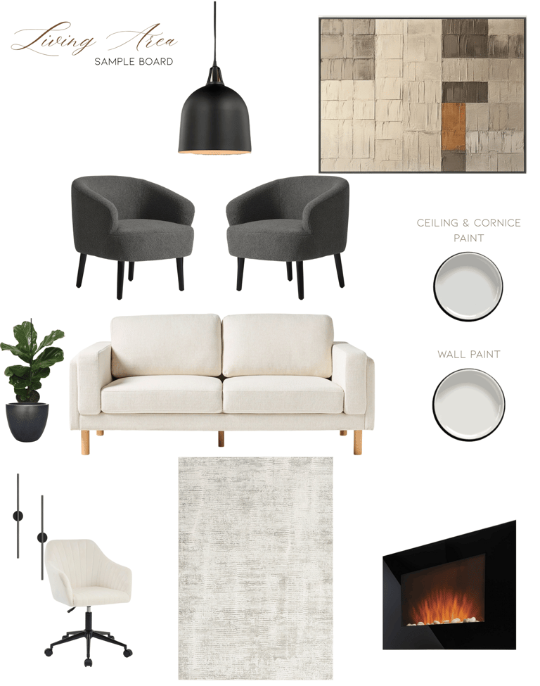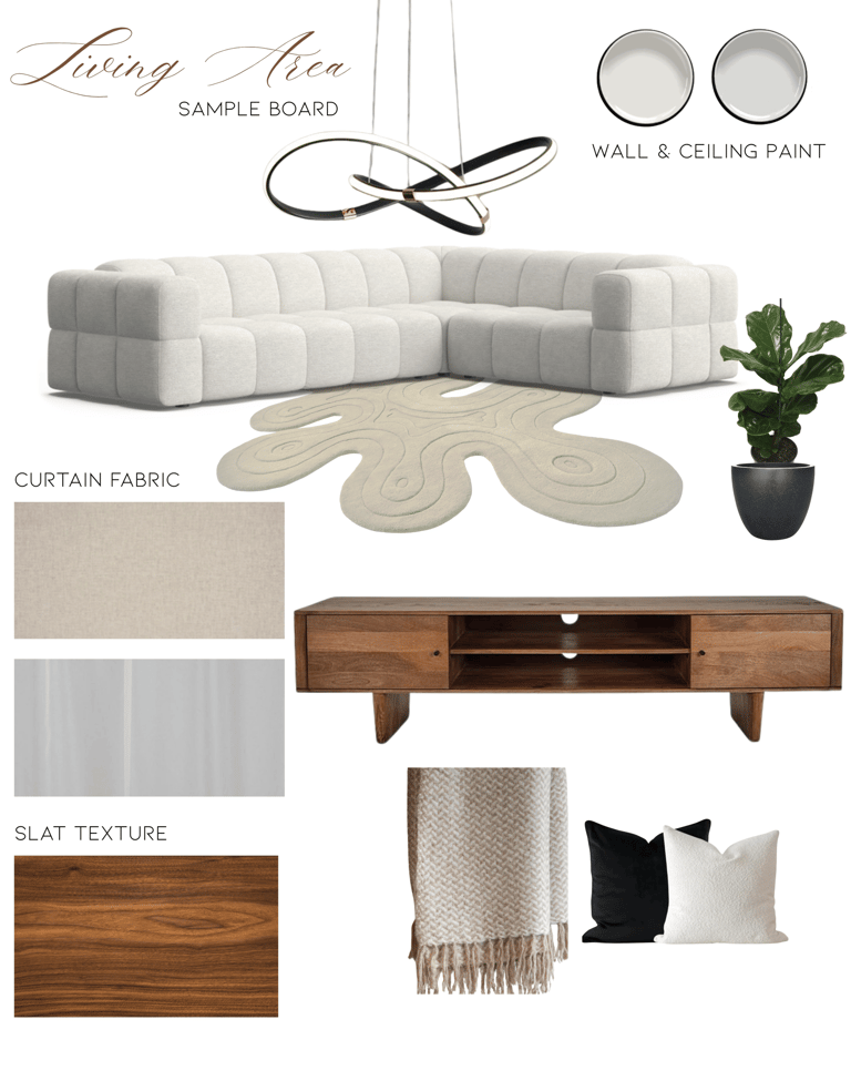 Each moodboard was tailored to align with the client’s preferred style—modern, minimalist, and warm with natural elements.Two Detailed Sample Boards