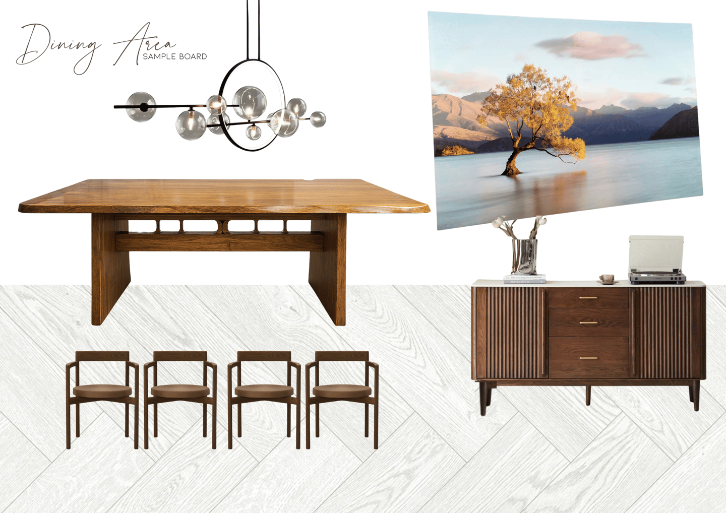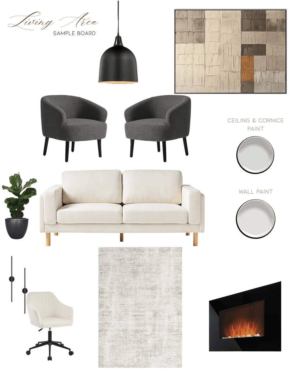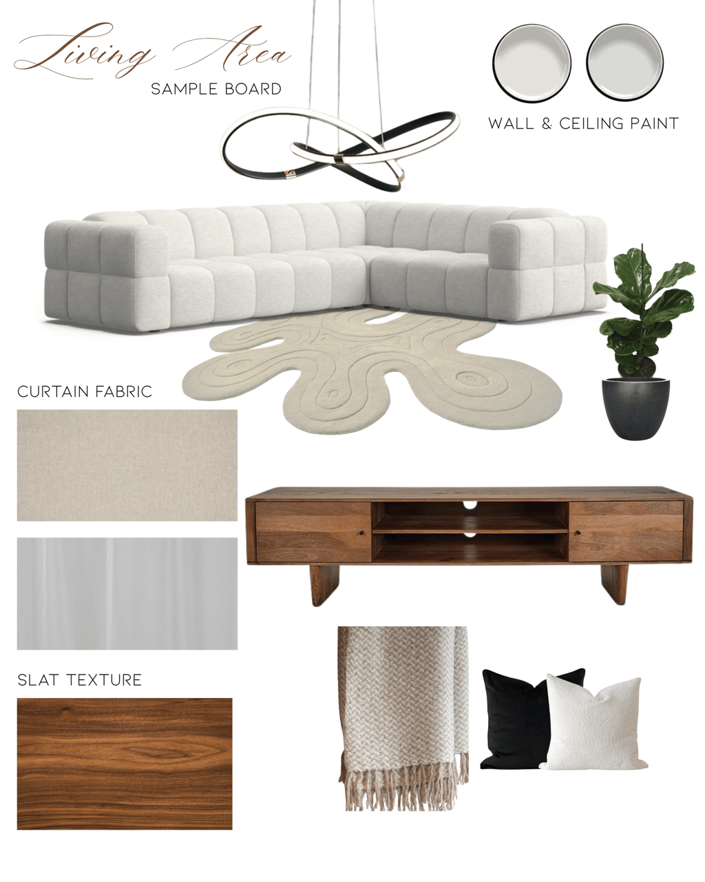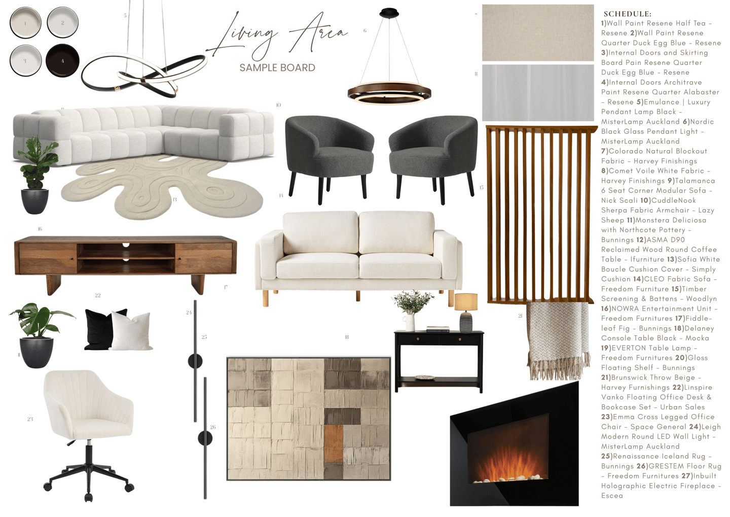 Each moodboard was tailored to align with the client’s preferred style—modern, minimalist, and warm with natural elements.Two Detailed Sample Boards