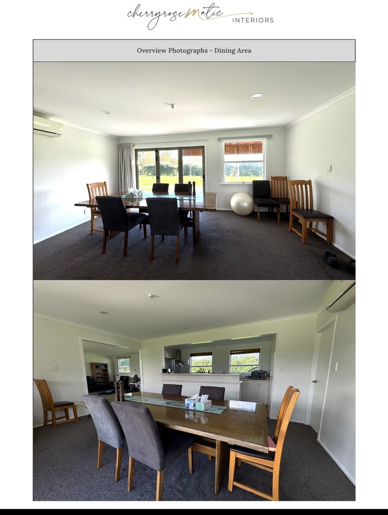 With structural walls needing to remain, there are limitations to how much the layout can be changed—making it a challenge to create a space that feels both open and practical. The client would like to keep the dining and coffee tables for sentimental reasons. The overall atmosphere is missing a sense of calm, order, and identity that the homeowners want in their daily environment.
